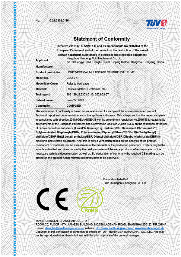 浙江制造認(rèn)證證書(shū)-CDL(F)系列(電機(jī)功率0.37kW-7.5kW)